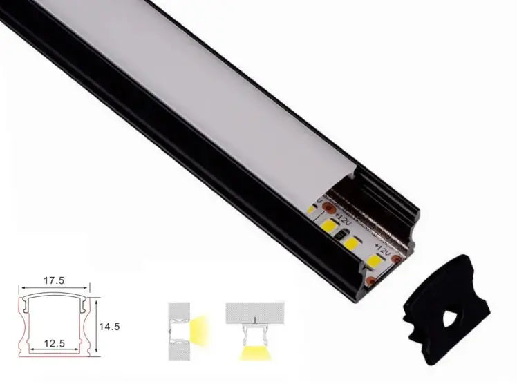 - Profiel | Opbouw | 4 Meter | Recht | Zwart - Opaal mat | 17.5 x 14.5 | COB ledstrip
