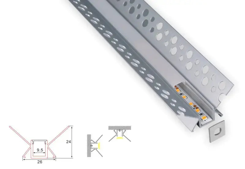 Het aluminium profiel is speciaal ontworpen voor inbouw in pleisterwerk (stuc) of achter wand- of vloertegels. Hierdoor wordt de verlichting naadloos weggewerkt en blijft enkel het zachte licht zichtbaar. Een ideale keuze voor wie een stijlvol en hoogwaardige lichtoplossing zoekt zonder zichtbare armaturen. Perfect voor indirecte verlichting, accentverlichting of het creëren van een architectonisch lichteffect.