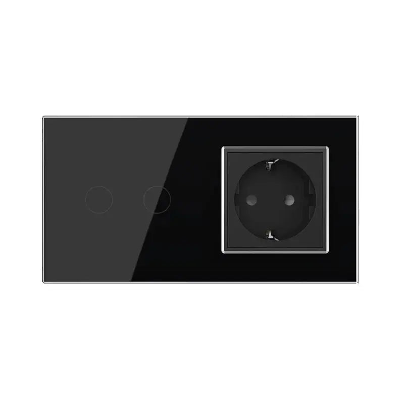 Luxe design touch schakelaar met wandcontactdoos en zwart glazen paneel