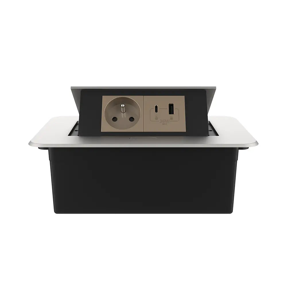 Dankzij het slimme push-up deksel is deze pop-up stekkerdoos inbouw altijd binnen handbereik wanneer u hem nodig heeft, en netjes uit het zicht wanneer niet in gebruik. Het deksel beschermt niet alleen tegen stof en vuil, maar voorkomt ook onbedoelde aanrakingen, waardoor uw stroompunten altijd veilig en schoon blijven.
