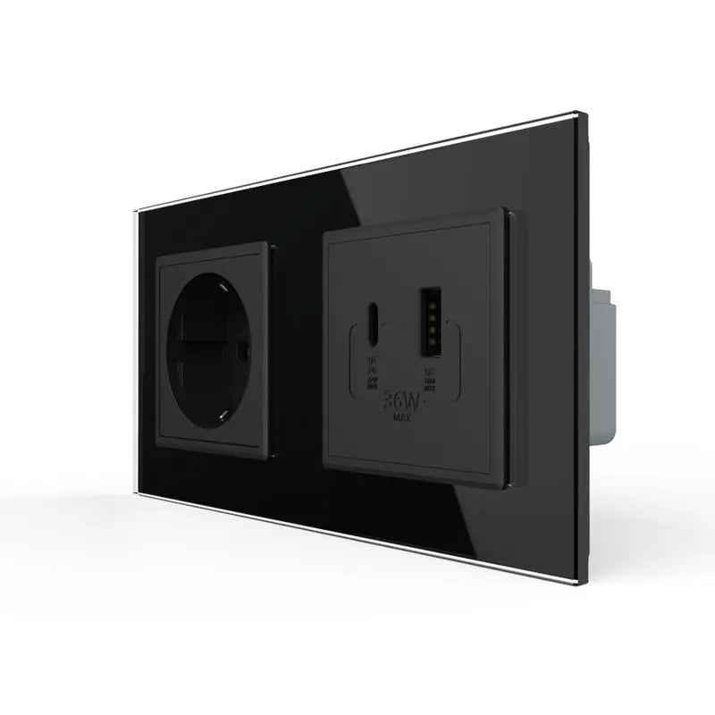 Livolo | Zwart | SR+SR | Wandcontactdoos | USB + USB type C oplader