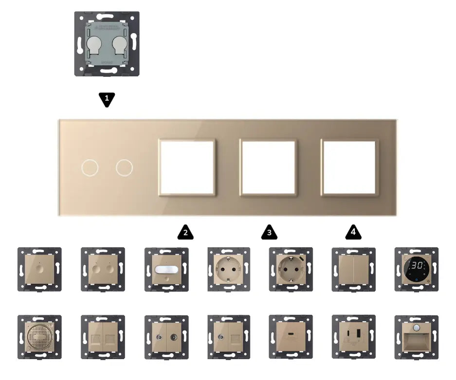 Mit diesem praktischen Online -Konfigurator können Sie mühelos Ihren eigenen Livolo -Switch zusammenstellen. Auf dieser Produktseite können Sie problemlos die gewünschte Deckfensterfarbe, die Anpassungsmodule und, falls gewünscht, einen Ort oder einen Speicherplatz auswählen, an dem der Schalter platziert ist. Dies ermöglicht es, eine vollständig koordinierte Lösung zu erstellen, die perfekt zu Ihrem inneren und praktischen Layout passt.