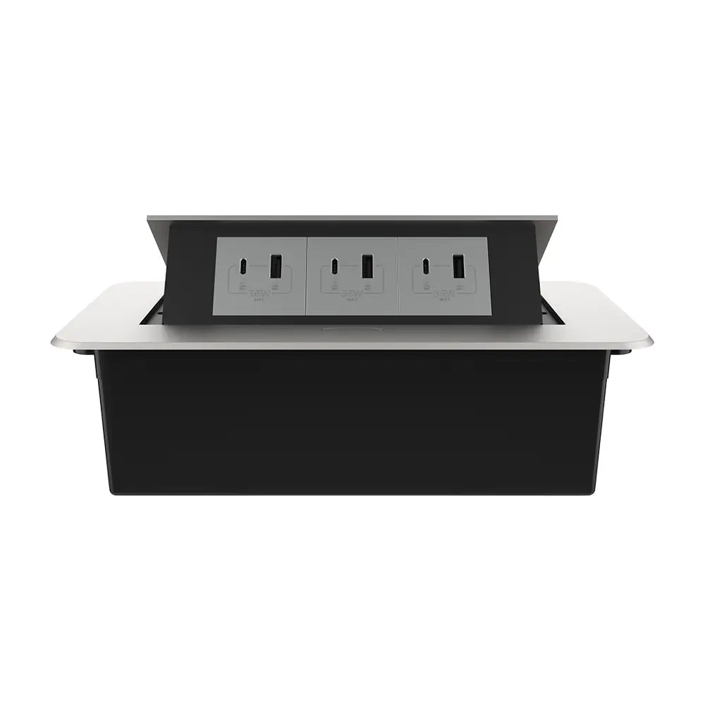 Mit seinem minimalistischen und modernen Look integriert diese Pop-up-Sockel mühelos in jede Art von Innenräume. Unabhängig davon, ob Sie es in einem Küchenoberteil, einem Schreibtisch, einem Meeting -Tisch oder einem Nachttisch verarbeiten, das schlanke Design sorgt für ein ordentliches und organisiertes Aussehen ohne störende Elemente.