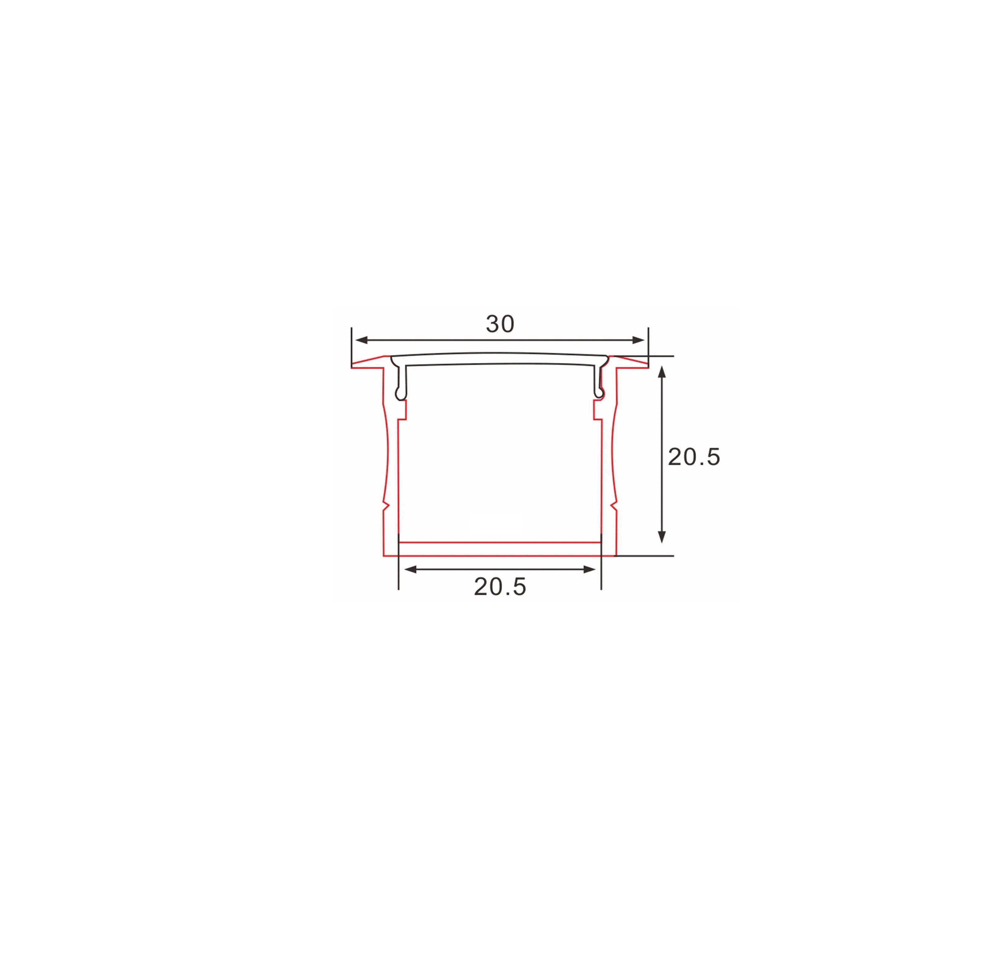Προφίλ | Ενσωματωμένο | 1 μέτρο | Νόμος | Αλουμίνιο | 20,5 x 20,5 | Τετράγωνη κουκούλα | Λωρίδα LED COB