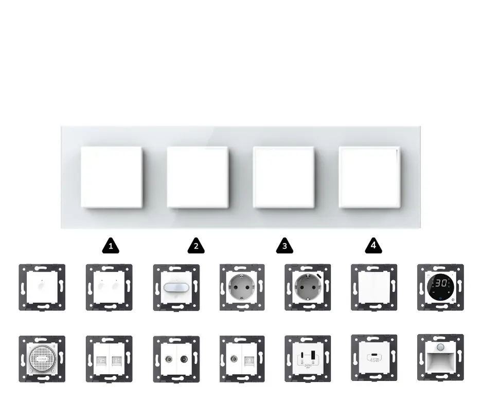 Είτε χρειάζεστε ένα διακόπτη είτε θέλετε ένα πλήρες σπίτι με μοντέρνο υλικό μεταγωγής, με αυτό το σύστημα μπορείτε να βάλετε μαζί τον τέλειο διακόπτη σας, εντελώς και σαφώς, πλήρως προσαρμοσμένο στις επιθυμίες και το σπίτι σας.