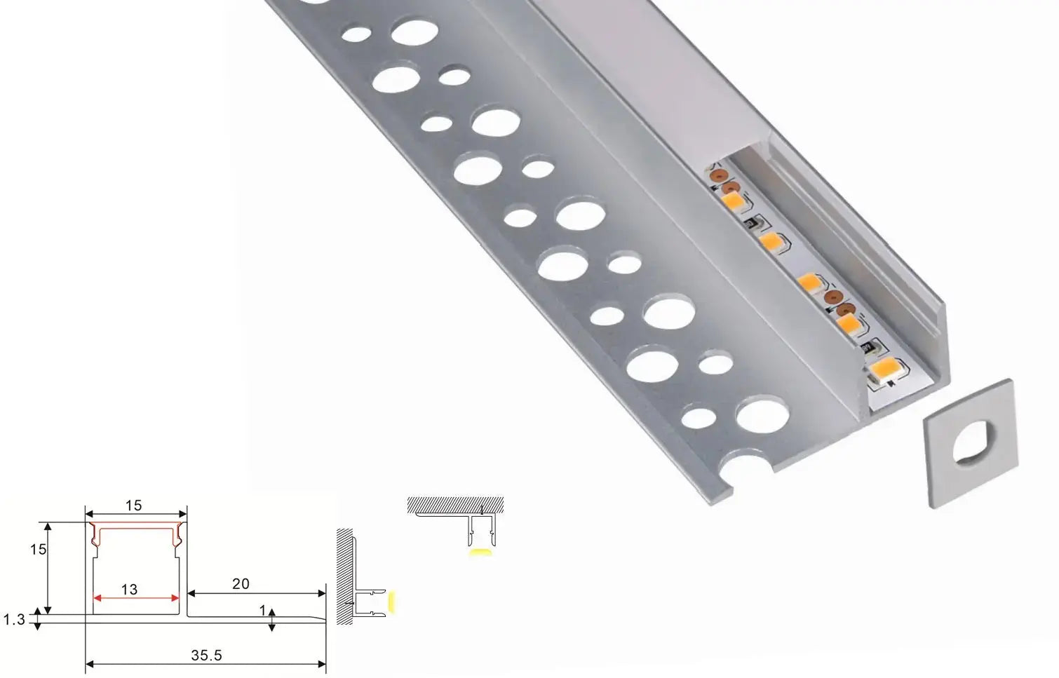 Plaster profile | Built-in | 1 Meter | Side | Aluminum | 35.5x15 | COB LED strip