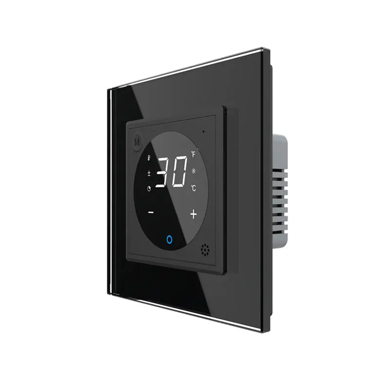 The Livolo thermostat is distinguished by its stylish and luxurious design in combination with advanced functionality. The clear display shows the current temperature and with the touch control you can easily adjust the settings.