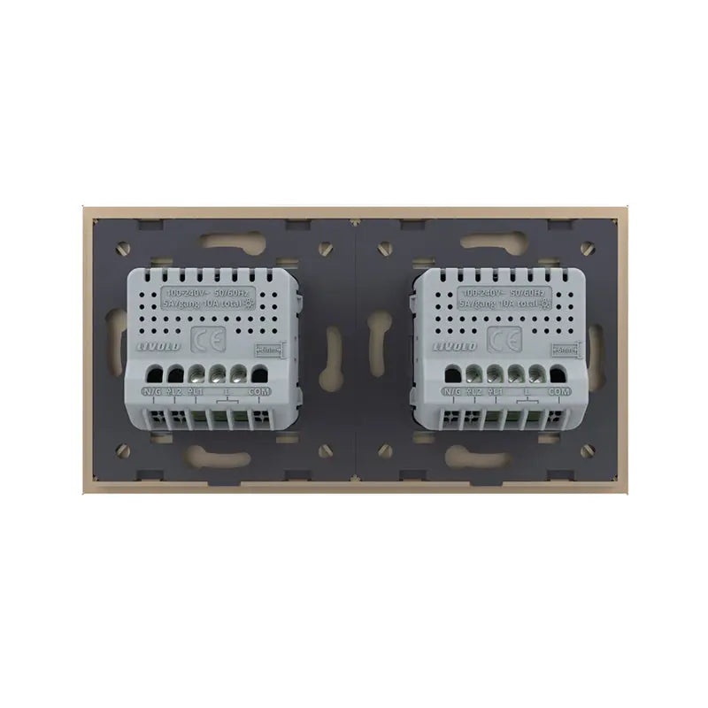 Discover the perfect combination of style and technology with the livolo smart touch switch. With an elegant gold glass panel, touch control and subtle LED background lighting, this switch lifts your interior to a higher level. Control your lighting manually, via the Livolo Home App, the Smart Home remote control from Livolo or Speech control.