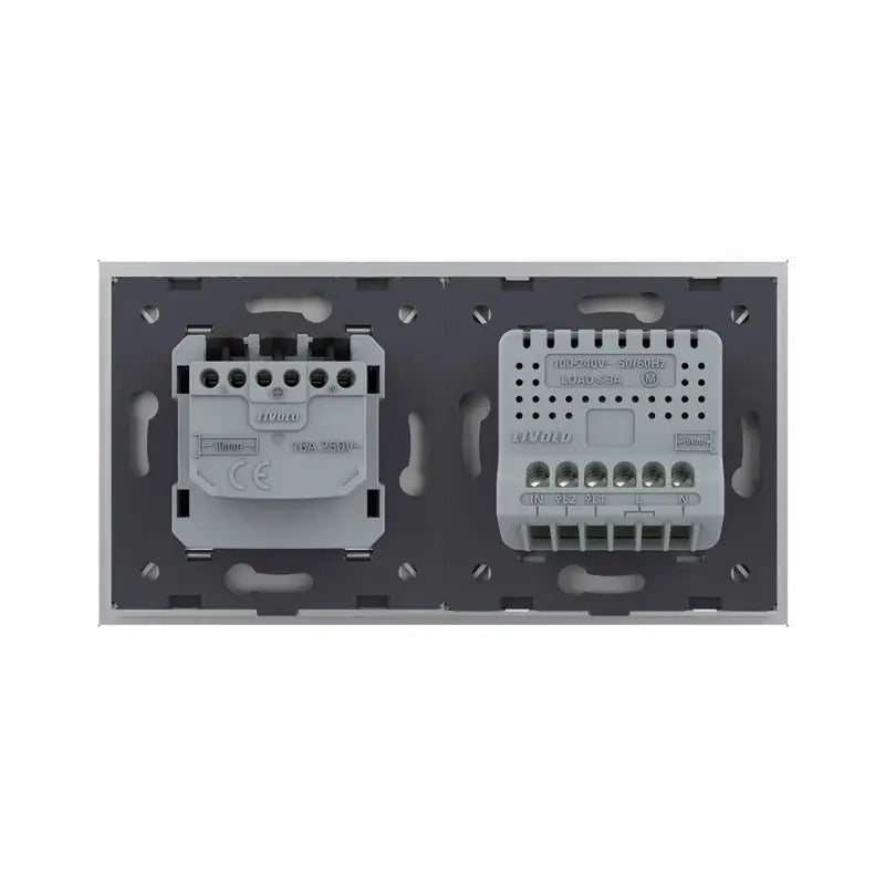 The Livolo Touch roller shutter switch with wall socket fits perfectly in both new -build homes and existing situations. Thanks to the standard connection to the brown (phase), blue (zero), black (down) and gray (up) wiring, you can easily replace the switch everywhere or install it on your electric roller shutter.