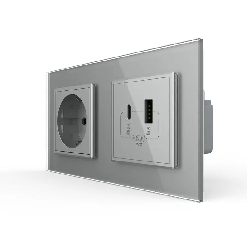 What makes these wall sockets with USB+USB-C charger really special is the luxurious finish with a scratch-resistant and color-resistant glass plate. This glass plate is not only stylish, but also practical: it is easy to clean and retains its clear, modern look, even after years of use. This keeps your interior looking carefully and elegant, without making concessions on functionality.