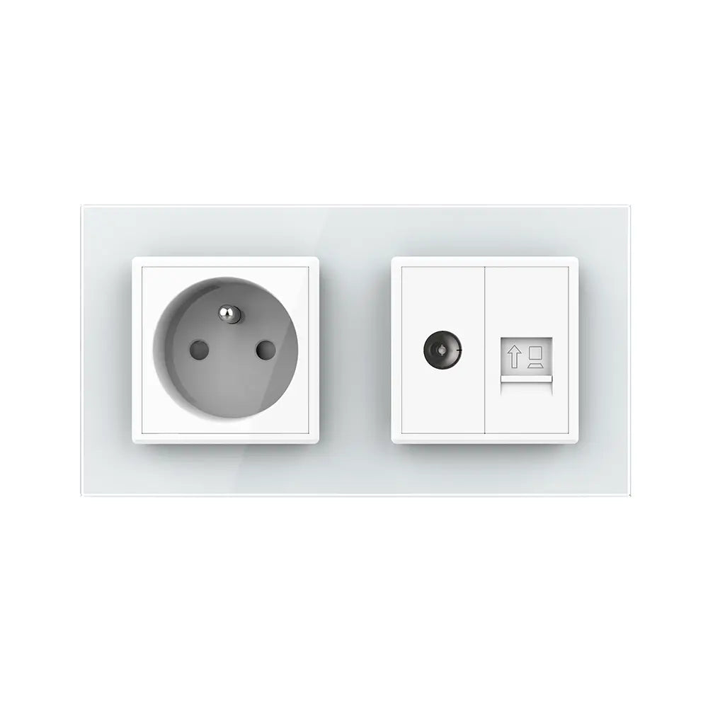 Socket de pared Francia con conexión de red y conexión de TV coaxial que se adapta perfectamente a cualquier interior