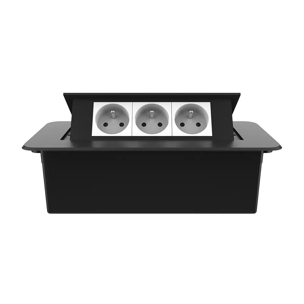 Este enchufe emergente incorporado está diseñado para fusionarse perfectamente con cada interior moderno. Ya sea en su cocina, en su escritorio o en una sala de reuniones, el elegante acabado y el diseño sutil convierten en una toma en una elegante adición a cada habitación. No más cables sueltos, sin desastre, solo paz y descripción general.
