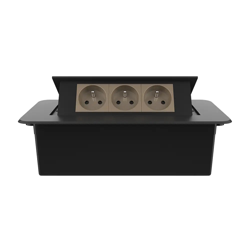 Este enchufe emergente incorporado está diseñado para fusionarse perfectamente con cada interior moderno. Ya sea en su cocina, en su escritorio o en una sala de reuniones, el elegante acabado y el diseño sutil convierten en una toma en una elegante adición a cada habitación. No más cables sueltos, sin desastre, solo paz y descripción general.