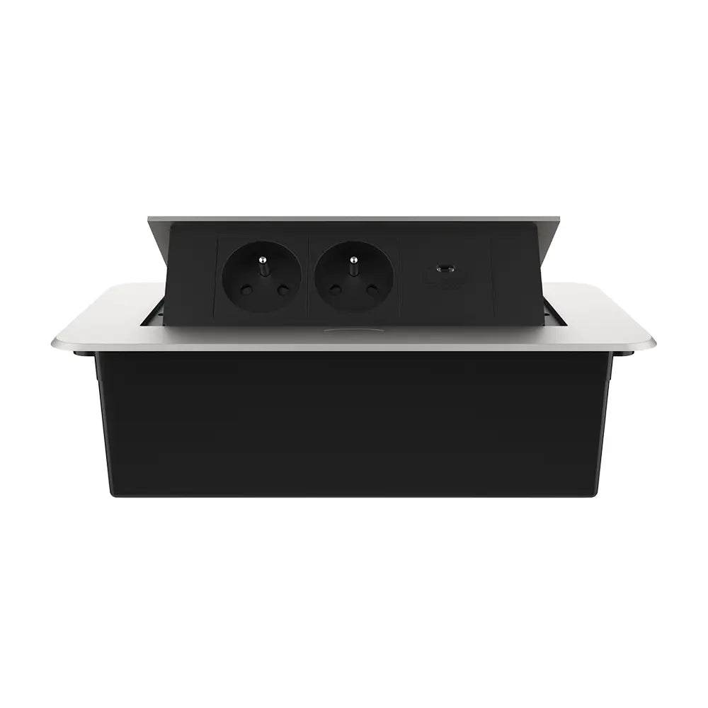 Con su aspecto minimalista y moderno, este zócalo emergente se integra sin esfuerzo en cada tipo de interior. Ya sea que lo procese en la parte superior de la cocina, escritorio, mesa de reunión o mesita de noche, el diseño elegante garantiza un aspecto ordenado y organizado sin elementos inquietantes.