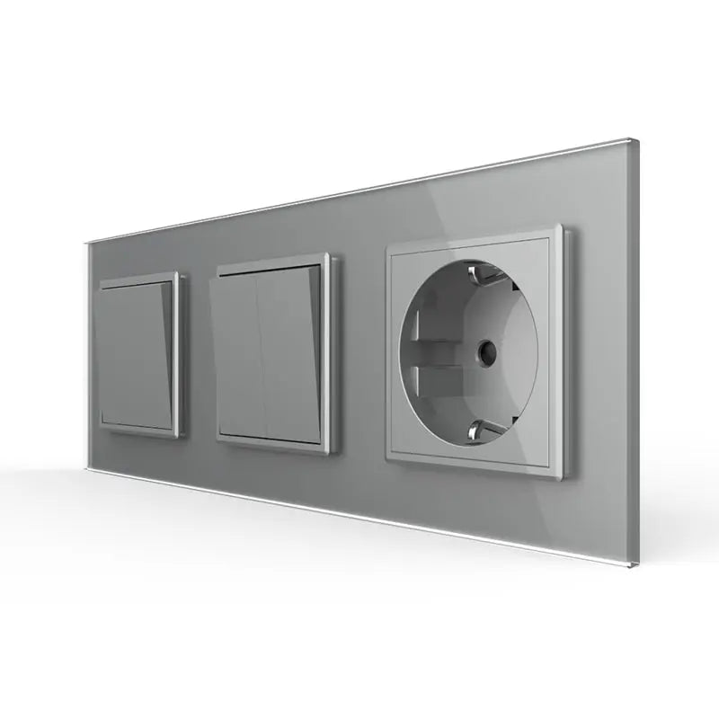 Livolo | Gris | 1+2+Sr | Encendido/apagado | Interruptor de balancín con enchufe de pared