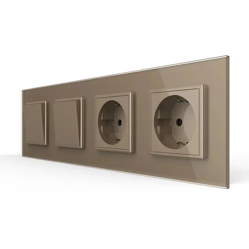 Livolo | Oro | 1+1+Sr+Sr | Encendido/apagado | Interruptor de balancín con enchufe de doble pared