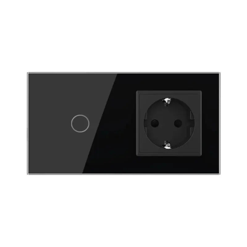 Ylellinen suunnittelu kosketuskytkin seinäpistorasialla ja mustalla lasipaneelilla