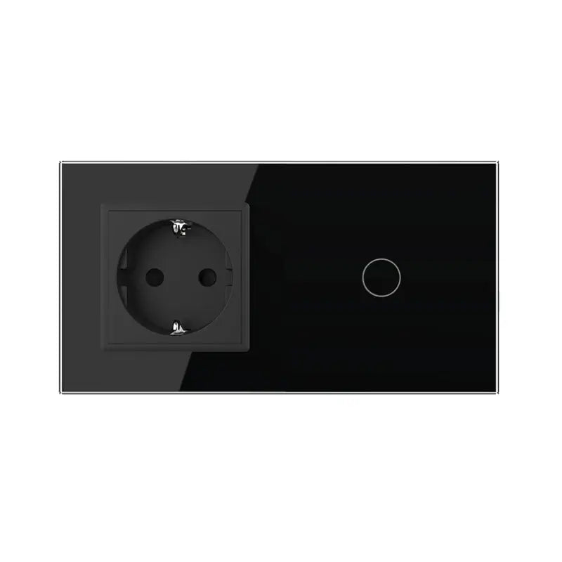 Ylellinen suunnittelu kosketuskytkin seinäpistorasialla ja mustalla lasipaneelilla