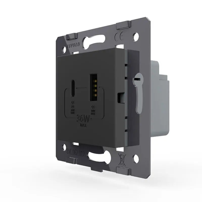 Livolo | Musta | SR | Moduuli | USB + USB-C-laturi
