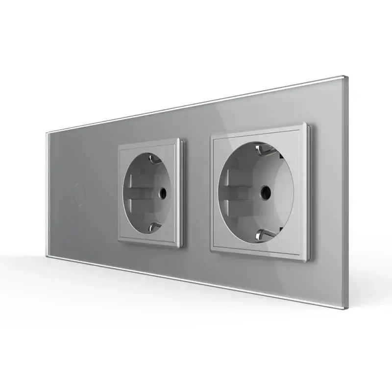 Universal Touch LED -himmennin wissel -kytkin ja seinäpistoke harmaalla lasipaneelilla