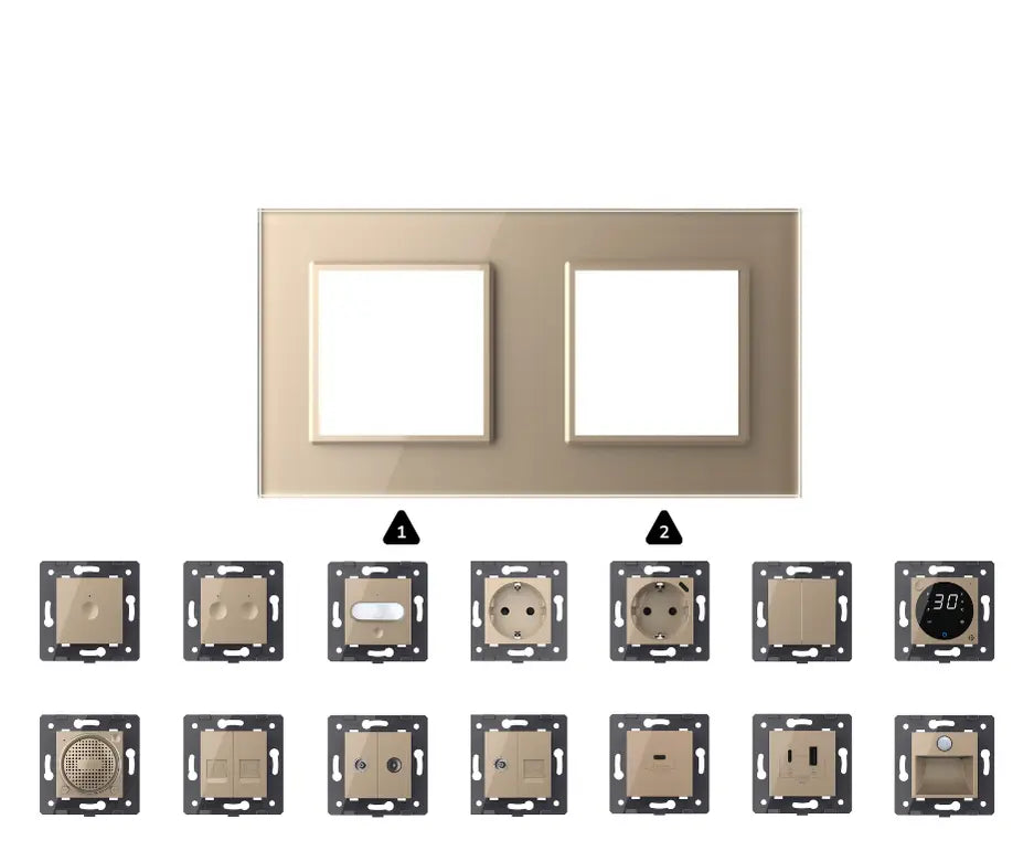 Avec ce configurateur en ligne pratique, vous pouvez mettre en place sans effort votre propre commutateur Livolo. Sur cette page de produit, vous pouvez facilement choisir la couleur de la fenêtre de couverture souhaitée, les modules correspondants et, si vous le souhaitez, un emplacement ou un espace où le commutateur est placé. Cela permet de créer une solution entièrement coordonnée qui correspond parfaitement à votre intérieur et à votre disposition pratique.