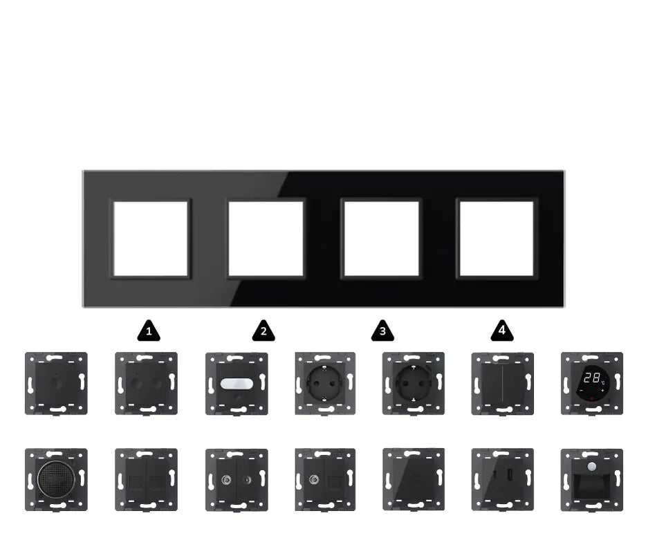 Avec ce configurateur en ligne pratique, vous pouvez mettre en place sans effort votre propre commutateur Livolo. Sur cette page de produit, vous pouvez facilement choisir la couleur de la fenêtre de couverture souhaitée, les modules correspondants et, si vous le souhaitez, un emplacement ou un espace où le commutateur est placé. Cela permet de créer une solution entièrement coordonnée qui correspond parfaitement à votre intérieur et à votre disposition pratique.