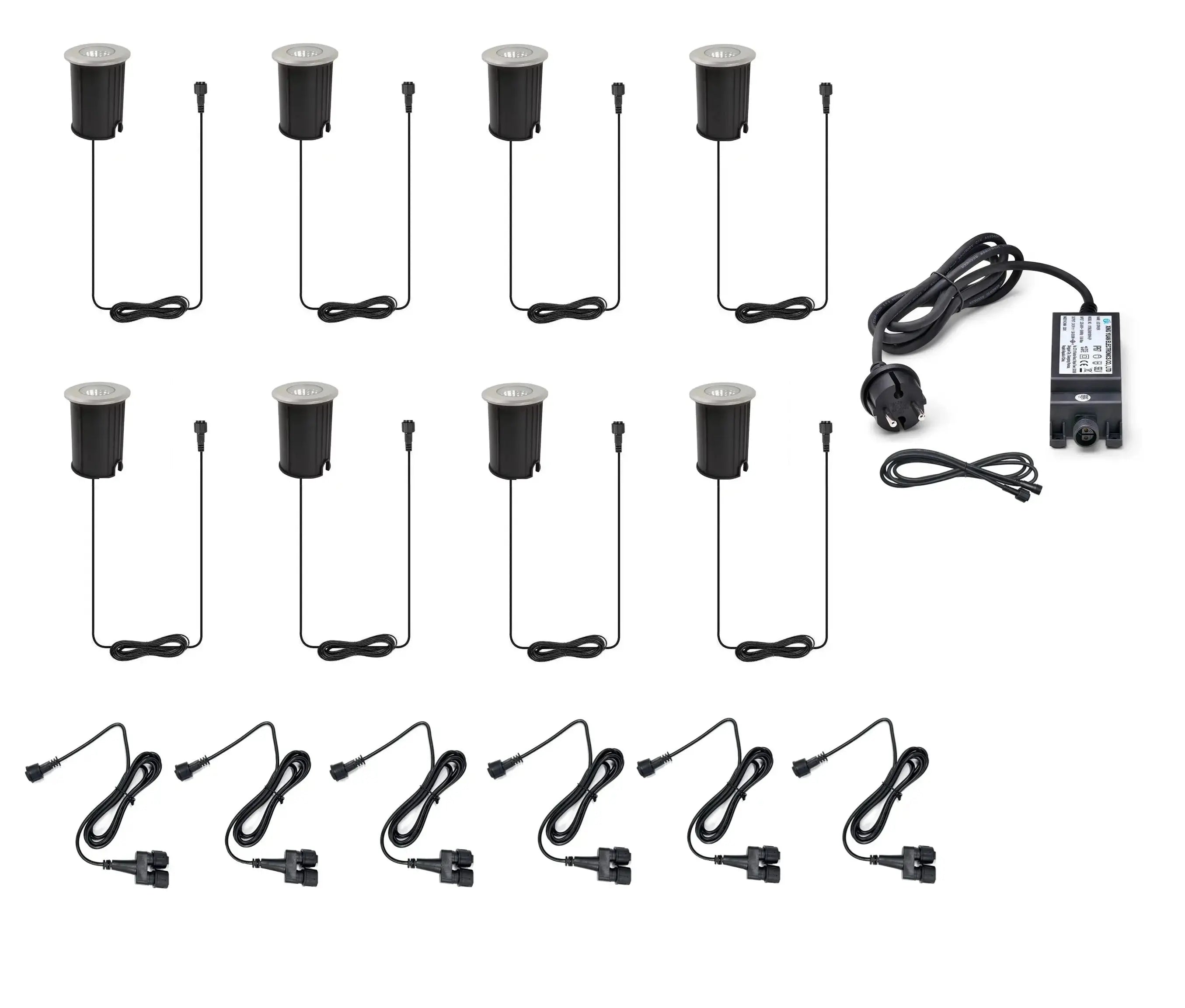 Compacte grondspot set van 8 voor subtiele tuinverlichting