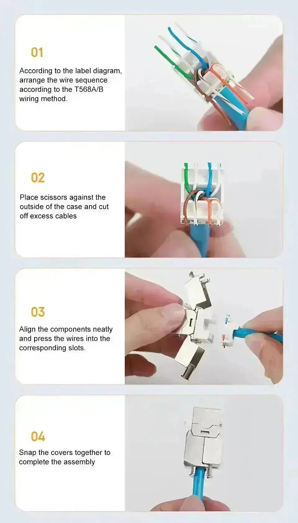 Le boîtier de la connexion et de la plaque d'obturation Livolo RJ45 est fabriqué à partir de matériaux de haute qualité qui garantissent une qualité fiable et une apparence luxueuse. La surface a une finition élégante, résistante aux rayures et facile à nettoyer. Cela permet à votre solution réseau de conserver son aspect neuf pendant des années, même en cas d'utilisation intensive.