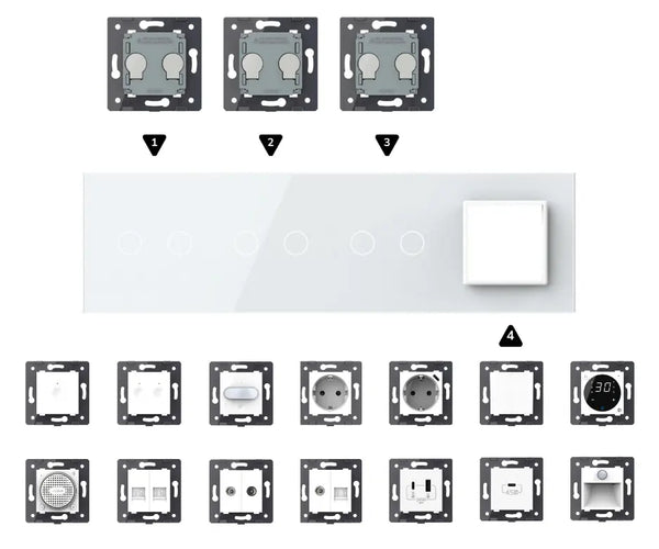Avec ce configurateur en ligne pratique, vous pouvez mettre en place sans effort votre propre commutateur Livolo. Sur cette page de produit, vous pouvez facilement choisir la couleur de la fenêtre de couverture souhaitée, les modules correspondants et, si vous le souhaitez, un emplacement ou un espace où le commutateur est placé. Cela permet de créer une solution entièrement coordonnée qui correspond parfaitement à votre intérieur et à votre disposition pratique.