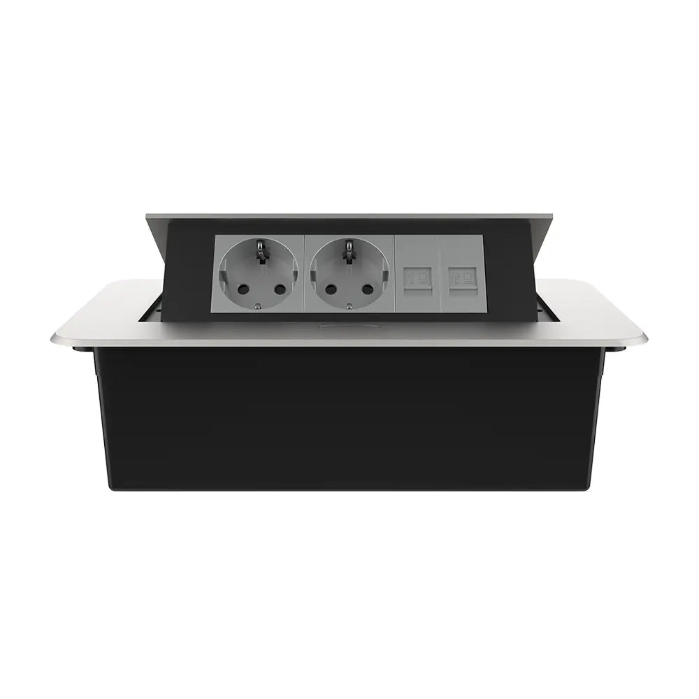 - Livolo | Argent | 3 | Poussière de socket pop-up | Construit -in | Double socket + double réseau cat.6 - gris