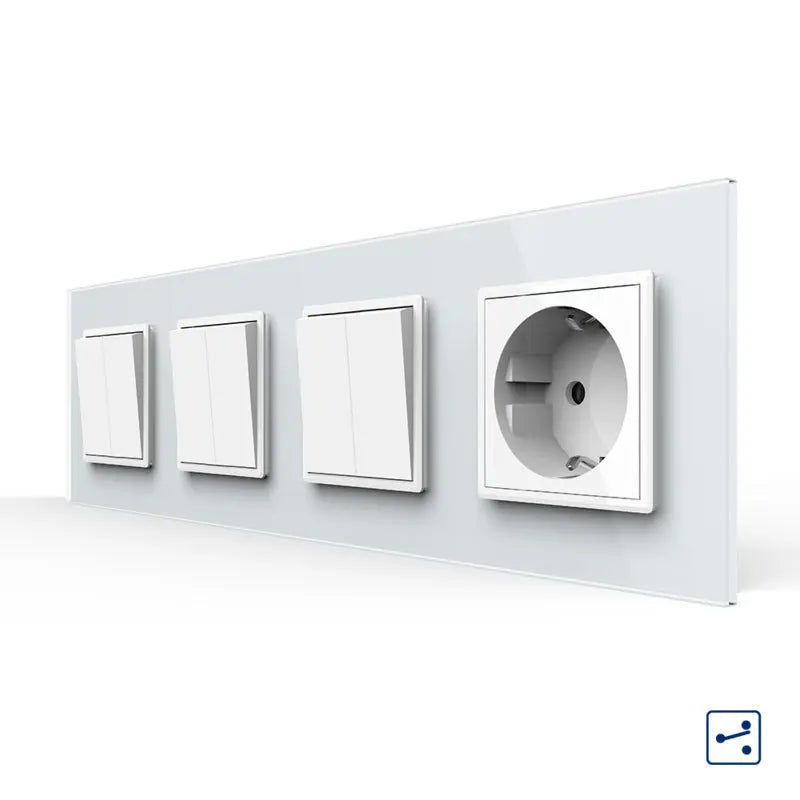 Le panneau avant de verre trempé est non seulement élégant, mais aussi fonctionnel. Il ne décolore pas, est résistant aux rayures et facile à nettoyer. Grâce au placement de la couleur derrière la vitre, le panneau reste magnifique pendant des années, sans devenir terne ni décoloré. La surface absorbe des couleurs environnementales subtiles, de sorte que l'interrupteur est absorbé dans son environnement.