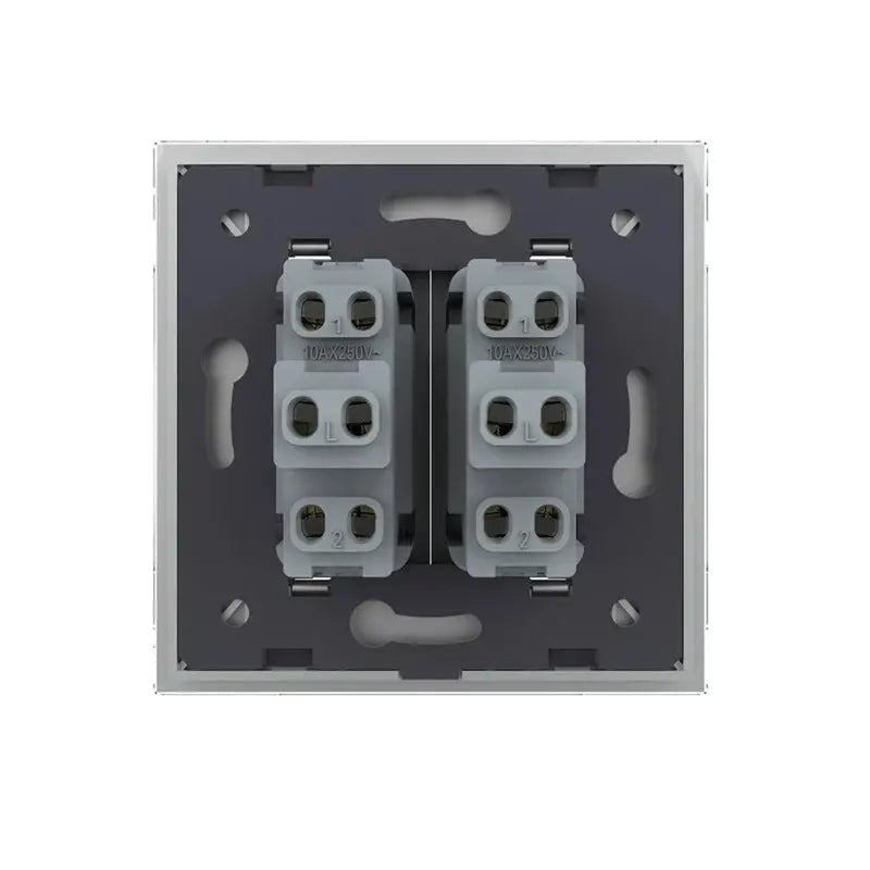 Le panneau avant de verre trempé est non seulement élégant, mais aussi fonctionnel. Il ne décolore pas, est résistant aux rayures et facile à nettoyer. Grâce au placement de la couleur derrière la vitre, le panneau reste magnifique pendant des années, sans devenir terne ni décoloré. La surface absorbe des couleurs environnementales subtiles, de sorte que l'interrupteur est absorbé dans son environnement.