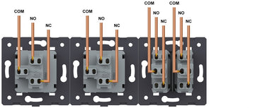 Le commutateur WIP Livolo Puls a trois points de connexion: com, no et nc. Ceux-ci permettent d'intégrer le commutateur de différentes manières dans les systèmes électriques ou domestiques: