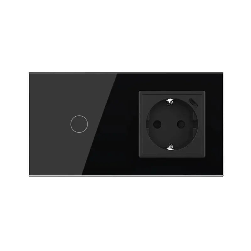 Interrupteur tactile de conception de luxe + douille murale avec chargeur USB-C et panneau de verre noir