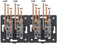 Le commutateur WIP Livolo Puls a trois points de connexion: com, no et nc. Ceux-ci permettent d'intégrer le commutateur de différentes manières dans les systèmes électriques ou domestiques: