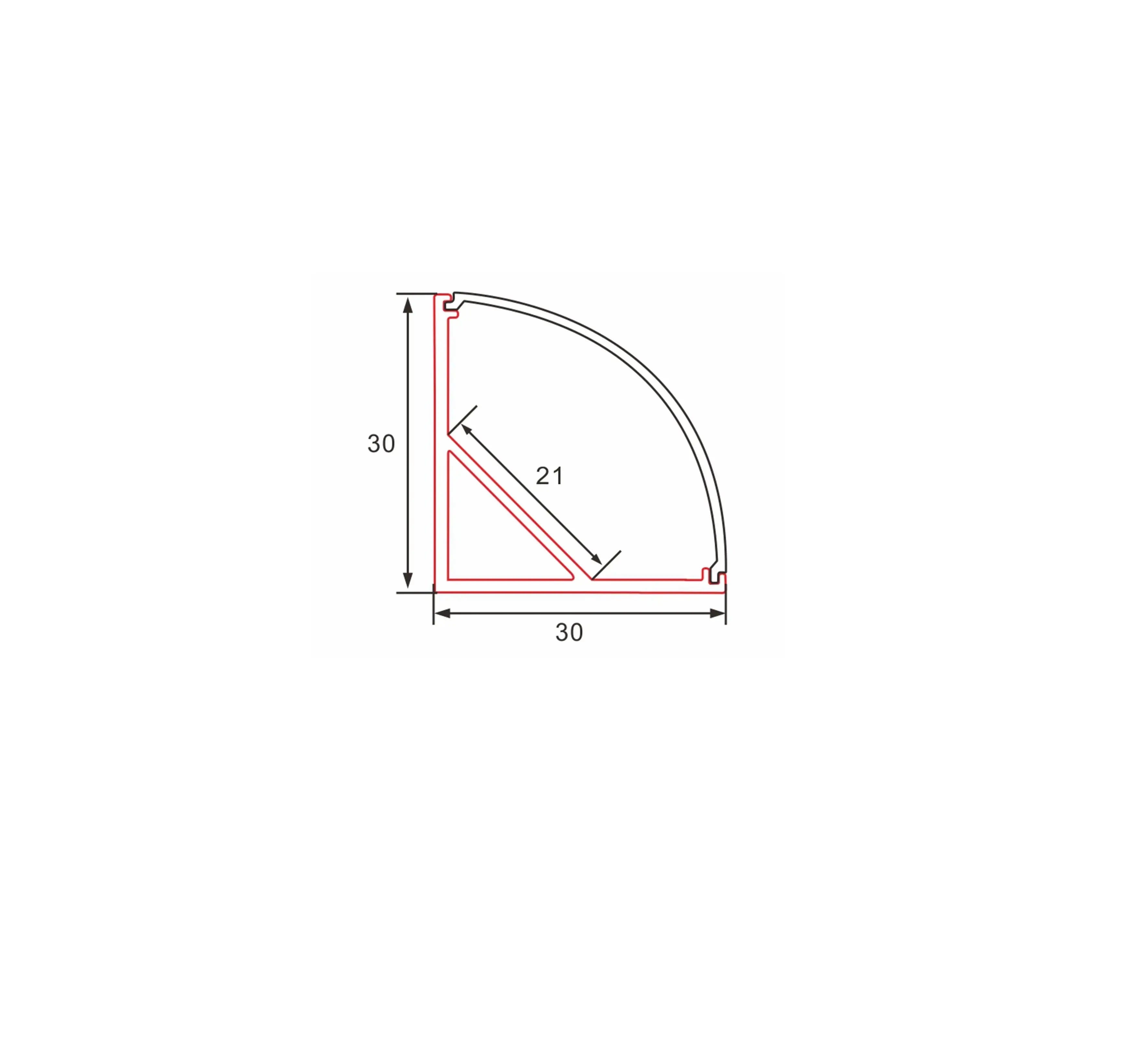 - Profil | Intégré | 1 mètre | Coin | Aluminium | 30x30 | Capot rond | Bande LED COB