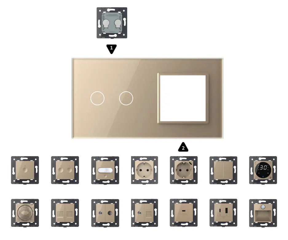 Sia che tu abbia bisogno di un interruttore o desideri una casa completa con materiale di commutazione moderno, con questo sistema puoi mettere insieme il tuo interruttore perfetto, completamente e chiaramente, completamente su misura per i tuoi desideri e la tua casa.