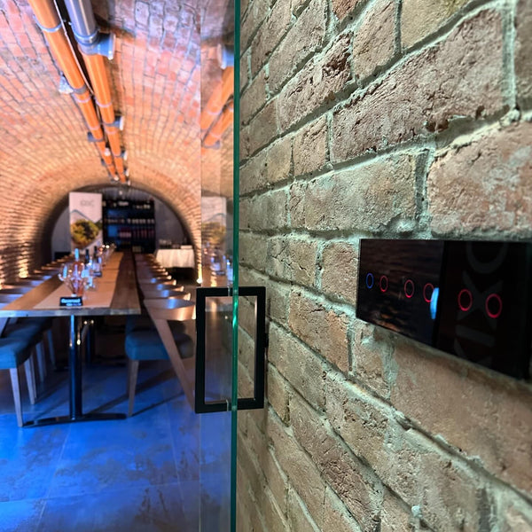 L'interruttore a doppio o spegnimento nel pannello touch di vetro nero si adatta perfettamente al lussuoso look del ristorante. Con un tocco leggero si accende o si spegne l'illuminazione, mentre l'elegante design corrisponde perfettamente al carattere della stanza. Questo pannello è un sottile gattle che combina funzionalità e stile.