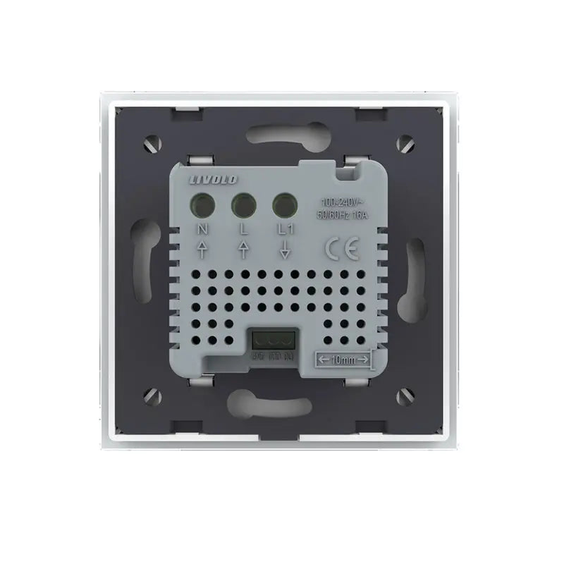 Il termostato Livol è fornito come prodotto completo, tra cui una finestra di copertura in vetro bianco e un mini-relay compatto. Questo relè garantisce una connessione affidabile con la caldaia di riscaldamento centrale tramite una connessione di secondo filo. Il termostato funziona sulla potenza di rete 230V e controlla il riscaldamento in base a una modalità ON/OFF per una temperatura stabile e un risparmio energetico.