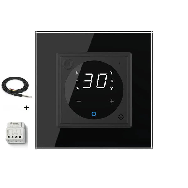 Questo termostato è ideale per case e spazi di lavoro in cui vengono utilizzate sia una caldaia di riscaldamento centrale che un riscaldamento a pavimento. Che si tratti di una casa di famiglia, di un appartamento o di uno spazio ufficio, questo termostato offre una soluzione pratica ed elegante.