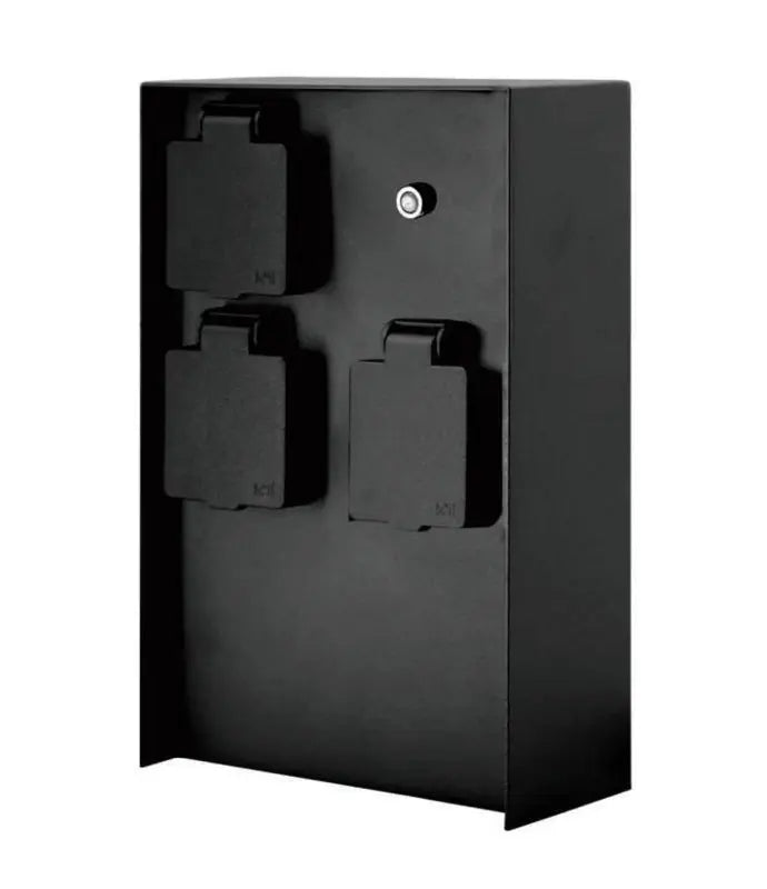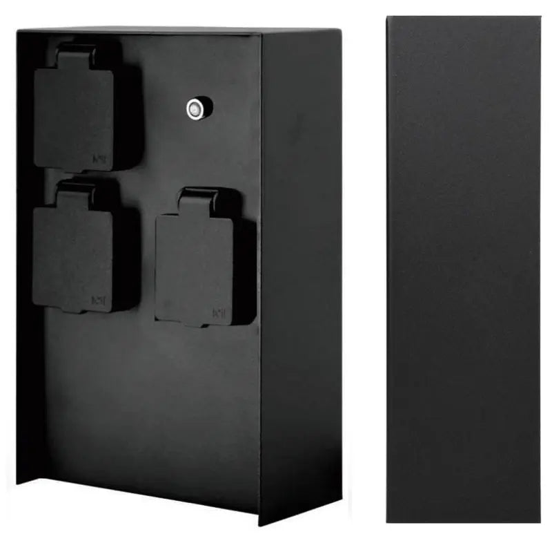 - Buiten Wandcontactdoos | Zwart | 3 Stopcontacten | Breed | Waterdicht | Schermersensor