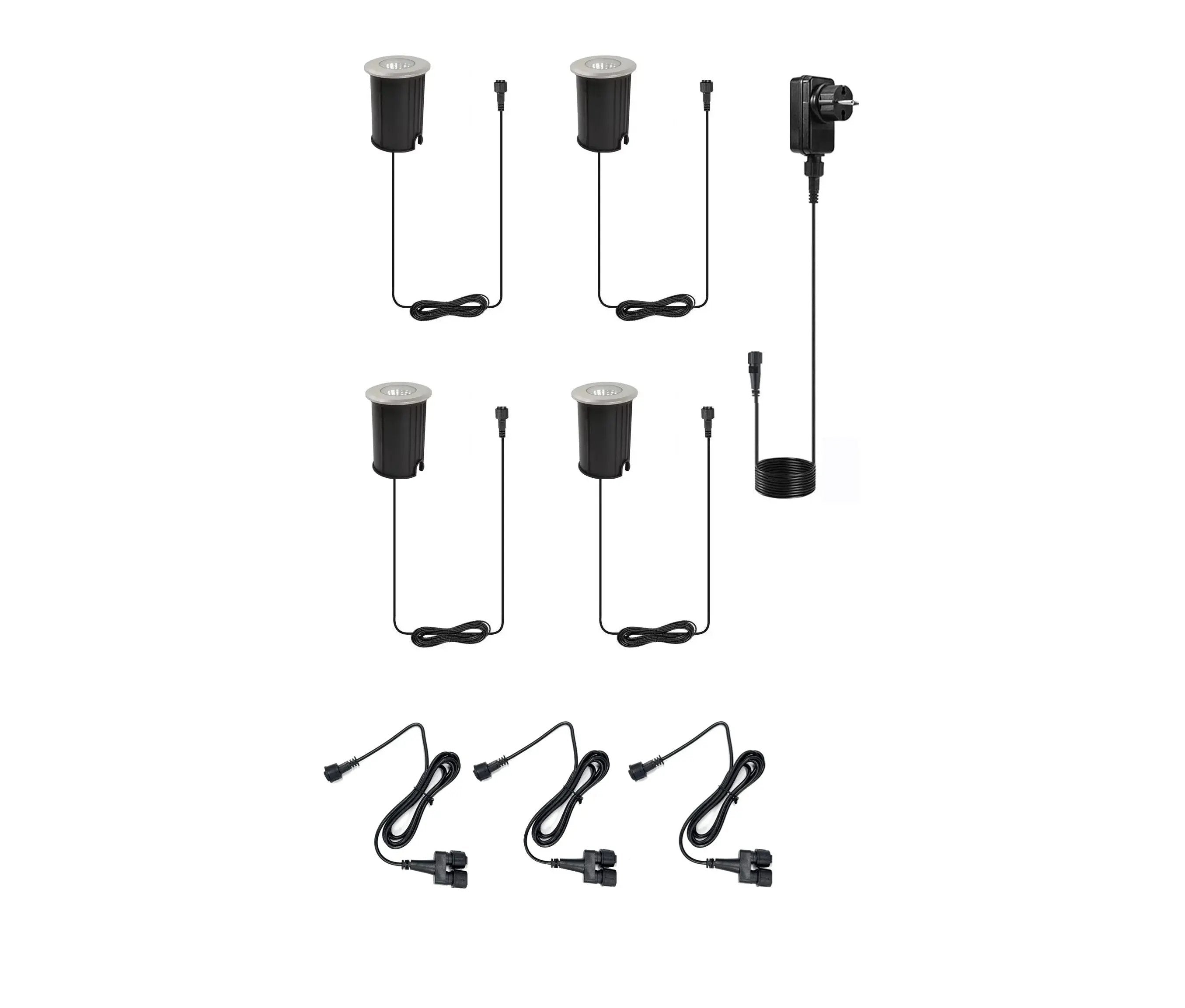 Complete Grondspot-Mini Set | Tuinverlichting 12V | Plug and Play | 4 Grondspots-Mini | Warm/Wit