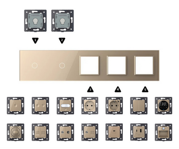 - Livolo | Goud | 1+1+SR+SR+SR | Glasplaat | Combinatie