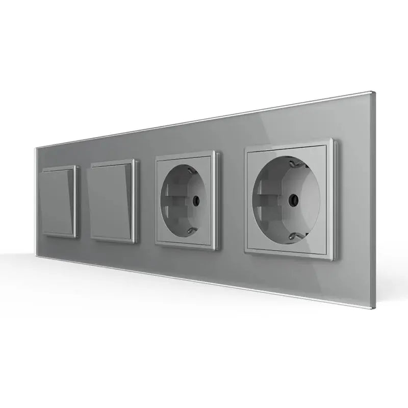 Livolo | Grijs | 1+1+SR+SR | Aan/Uit | Wipschakelaar met dubbele wandcontactdoos