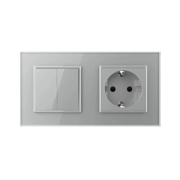 Luxe design puls wipschakelaar met wandcontactdoos en grijs glazen paneel