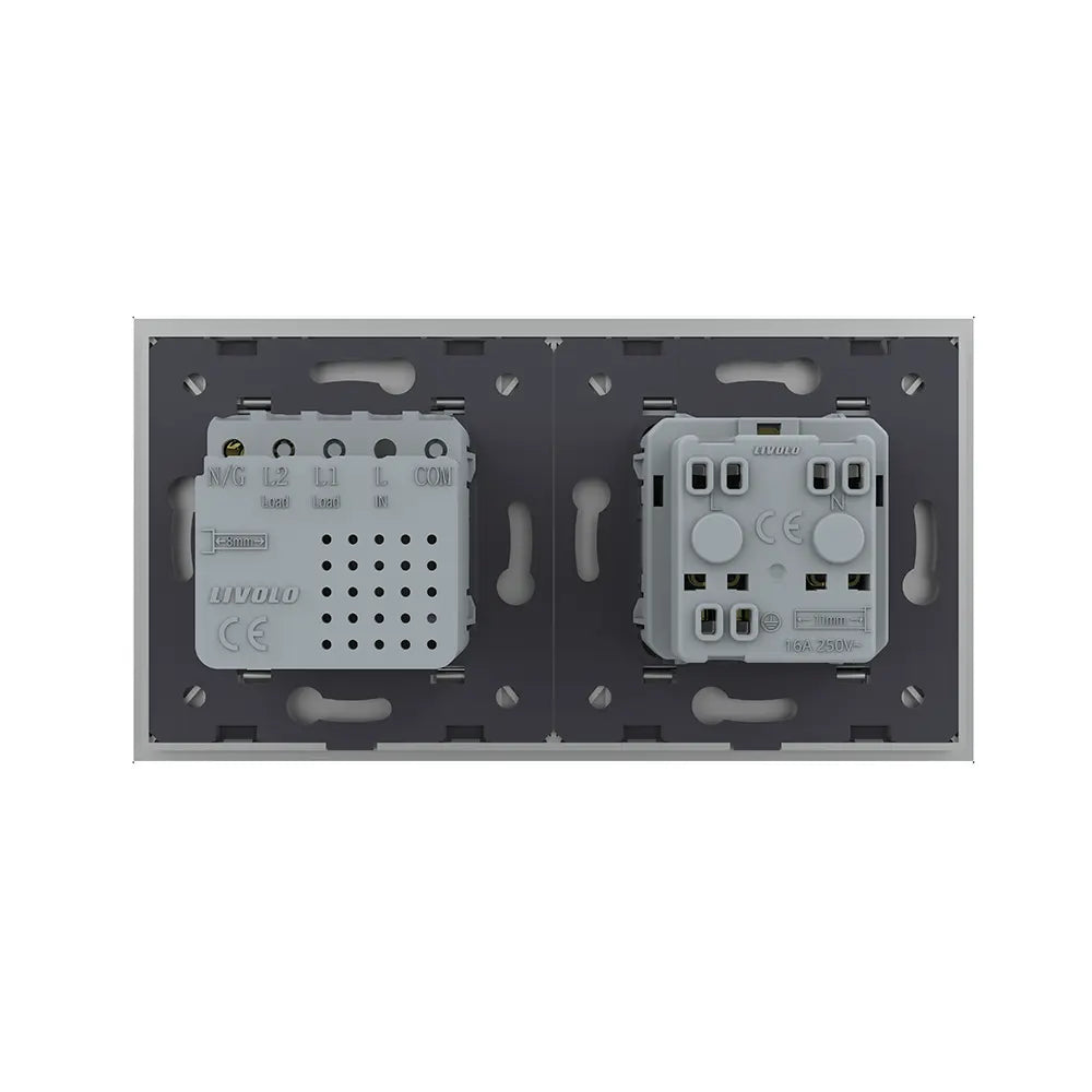 Livolo | Grijs | SR+SR | Wandcontactdoos | USB + USB type C oplader | France