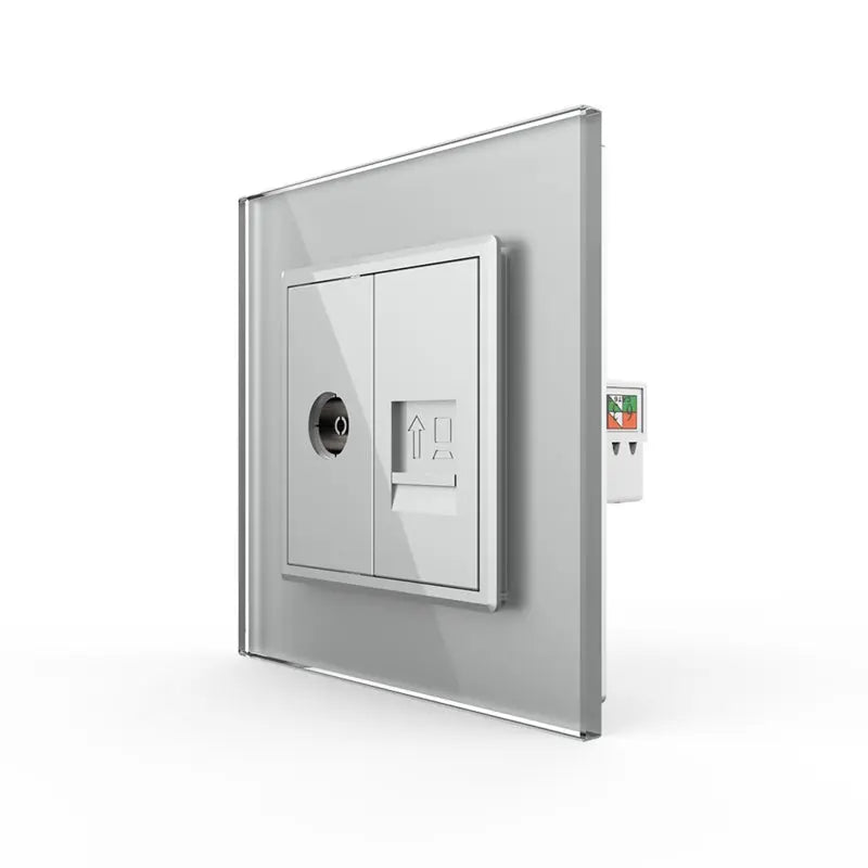 De module is volledig compatibel met het Livolo systeem en wordt stijlvol geïntegreerd in de bijpassende glas afdekramen. Het resultaat is een uniforme, strakke wandafwerking waarin tv- en netwerkaansluitingen stijlvol zijn weggewerkt.