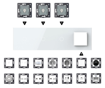 - Livolo | Wit | 1+1+1+SR | Glasplaat | Combinatie