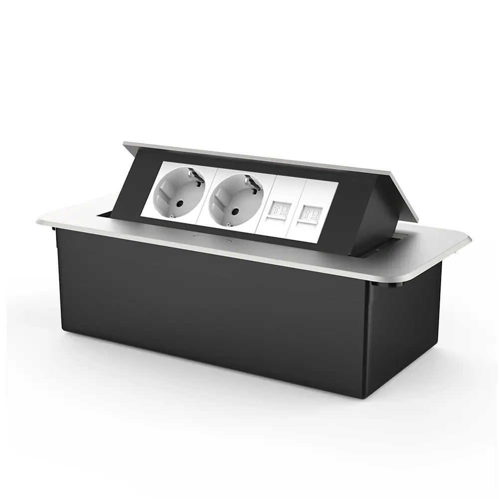 Dankzij het slimme push-up deksel is deze stekkerdoos altijd binnen handbereik wanneer u hem nodig heeft, en netjes uit het zicht wanneer niet in gebruik. Het deksel beschermt niet alleen tegen stof en vuil, maar voorkomt ook onbedoelde aanrakingen, waardoor uw stroompunten altijd veilig en schoon blijven.