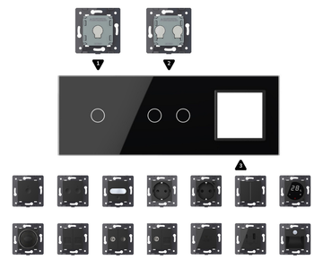 Livolo | Zwart | 1+2+SR | Glasplaat | Combinatie